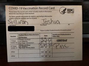 I am now fully vaccinated, as I took the second dosage on the 24th of March last month. I, my mother, and Chad decided to take the COVID-19 vaccine, which we did so with no hesitation. As soon as FDA gave them the ok, we immediately want them and put ourselves on the registration list to receive the COVID-19 vaccine, which is more of a waiting list. We all three took Pfizer COVID-19 vaccine, which has the highest percent although it is only by one percent higher than the Moderna one because Pfizer has 95% while Moderna has 94%, so it is close enough. When we went to have our vaccine shot, we went to a vaccine center in Pikeville, Ky, where we receive the vaccine while we stay in the vehicle. We pull up; a couple of people in a booth-alike who would take in the information, then hand us the papers for us to share our information and signed then drive ahead to some canopy where we would park there to pull down our windows then put up our arms out. They came over to give us a shot; then we leave that canopy to a parking lot to wait for 15 minutes to make sure that we did not have any reaction then we were out of there. It took us maybe, 5 minutes from the booth to the canopy to get shots and then 15 minutes in the parking lot waiting for the person who looks at the papers that they put down as a time that we were injected, so they look at their clock to see if we have been there for 15 minutes then let us drive past them to get out. Our experience of getting vaccinated is pretty positive; we did not have a big of a problem or anything as we only had was minor. That was a tiny hurt on the place of injection on the arms that go away within a day. We had the same experience from our second final dosage of the vaccine because, to be fully vaccinated, we have to take two dosages within’ 3 weeks apart, at least for Pfizer.