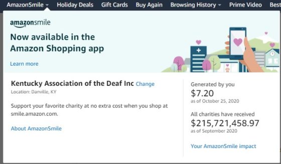 I have chosen the Kentucky Association of the Deaf, just started using the Smile Amazon recently. Since that, I have found out that this was a thing I will continue donating all the funds to Kentucky Association of the Deaf through my shopping on Amazon which I often do so Kentucky Association of the Deaf should start seeing a decent donation coming from Amazon especially in an annual contribution through me and other Amazon shoppers who use the Smile Amazon if they chose Kentucky Association of the Deaf too. If you don’t want to keep on donating the funds to one organization, you can change to a different organization for Amazon to donate through your shopping. Still, you would have to change your preferred organization on Smile Amazon every time before you buy something on Amazon, and the only time that they would be counted is if you use the Smile.Amazon.com every time instead of the main Amazon.com.