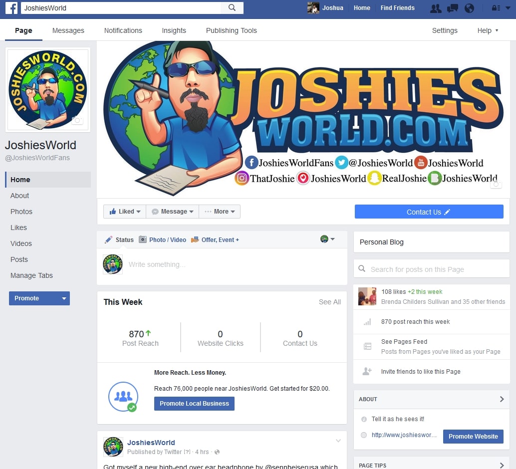 Have you seen the new Facebook page yet? If not then you should go and check out some of the pages on Facebook because they have been completely redesigned. I think that the new redesign of pages on Facebook is better and less of clutters than the ones they had before because the ones they had before were somewhat too plain while being cluttered at the same time. I am digging the new Facebook page since I have a few, especially one for JoshiesWorld which you are more than welcome to check out and like the page! So at the same time that will give you an idea of what the new FaceBook page looks like. You can click here to visit the JoshiesWorld’s Facebook page. If you have a page of your own on Facebook then you should have the new redesigned page on Facebook as well and if you do then please feel free to leave a comment below to let me know what you think of the new Facebook page! Here is the screenshot of the new Facebook page that they have rolled out yesterday.