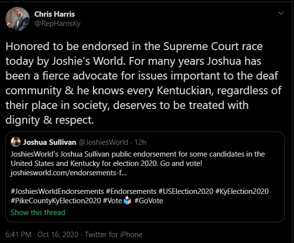 JoshiesWorld has been in the eyes of politics for many years, and political candidates have publicly shared that they have had an endorsement by JoshiesWorld before. Here is a screen of one political candidate who shared JoshiesWorld’s endorsement.